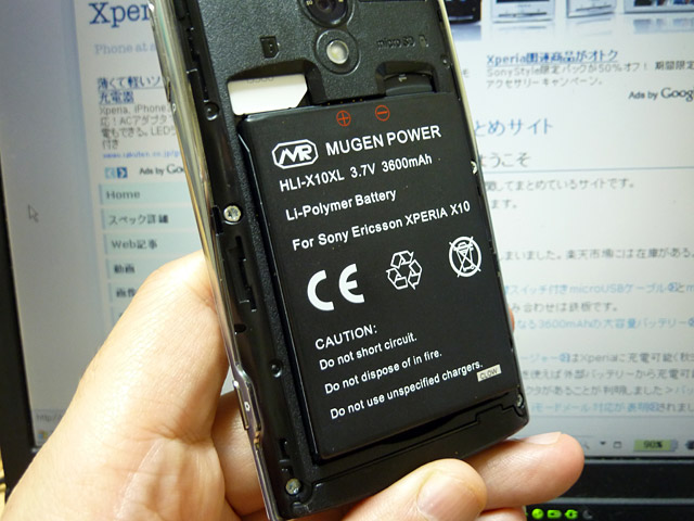 携帯電話のサードパーティバッテリーとしてよく知られているMUGEN POWERからXperia用の大型バッテリー HLI-X10XLが5月末に発売されました。直販サイト